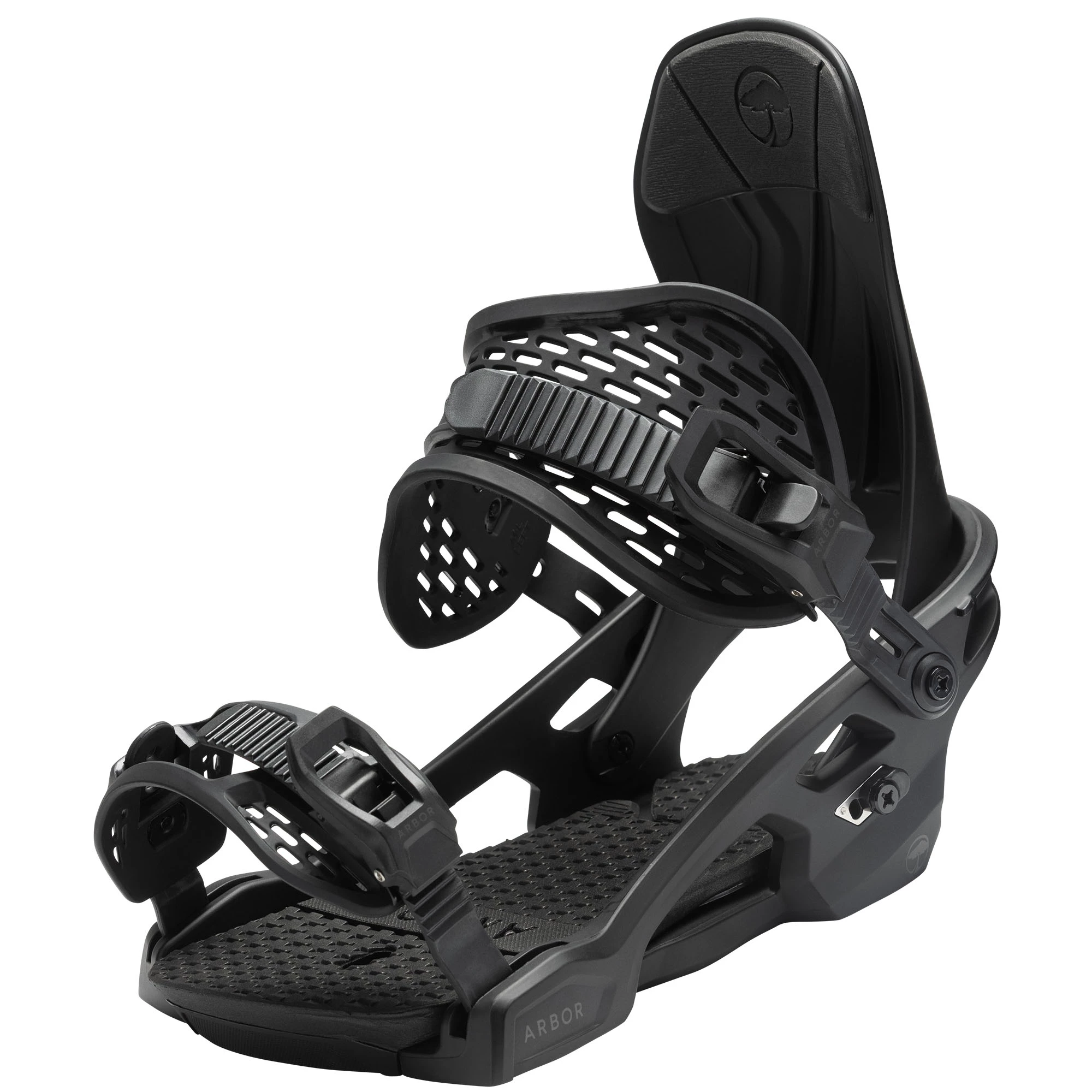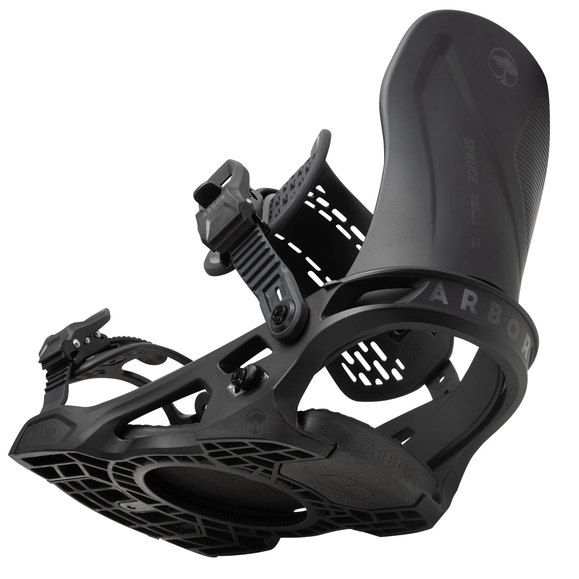 The Arbor Men’s Spruce Snowboard Bindings bring performance, progression, and value into perfect harmony. These all-terrain bindings introduce a lightweight, single-mold baseplate and heel cup for a unified flex, their endless comfort and seamless board feel generates a light, lively ride thanks to a canted EVA footbed, and brand-new ergonomic, pre-curved ankle strap, that offers all the comfy feels. The toe and ankle bow straps keep your foot tray clear upon boot entry. Feel good and ride good with the Arbor Men’s Spruce Snowboard Bindings!
