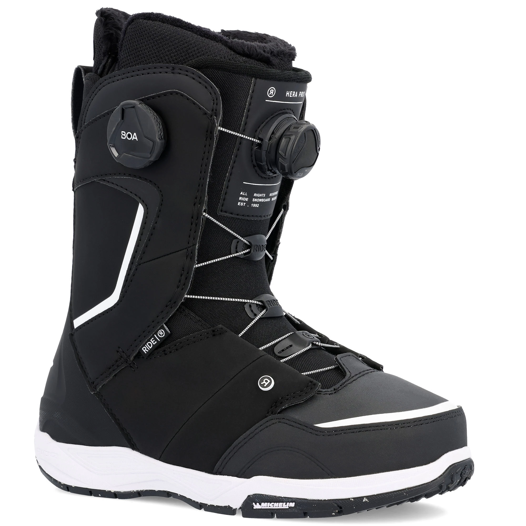 The Ride Snowboards Women’s Hera Pro Snowboard Boots are made for intermediate to advanced snowboarders who are seeking out plenty of stability for their winter adventures. Crafted to deliver a medium amount of flex, these boots ensure incredible comfort and impressive durability. You can expect to have solid footing while wearing these boots thanks to their Michelin® Hybrid Summit Sole and +Slime Midsole. The H4 BOA® Coiler Fit System, Tongue Tied™ Hybrid Harness, BOA® TX3 Lace, and The Closer™ all work together to make sure your feet stay secure throughout the day. Expect to stay warm thanks to the heat reflective foil featured in these boots. Enjoy all of your winter adventures while wearing the Ride Snowboards Women’s Hera Pro Snowboard Boots.